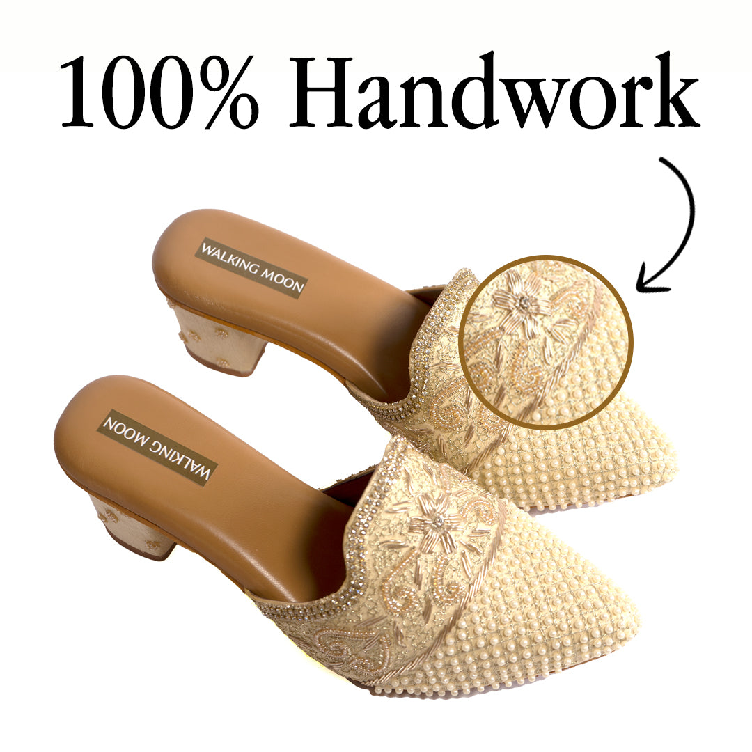 White Pearl Bridal Mule Heel