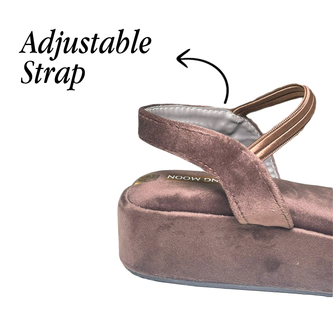 Brown Velvet With Ankle-Strap Wedge
