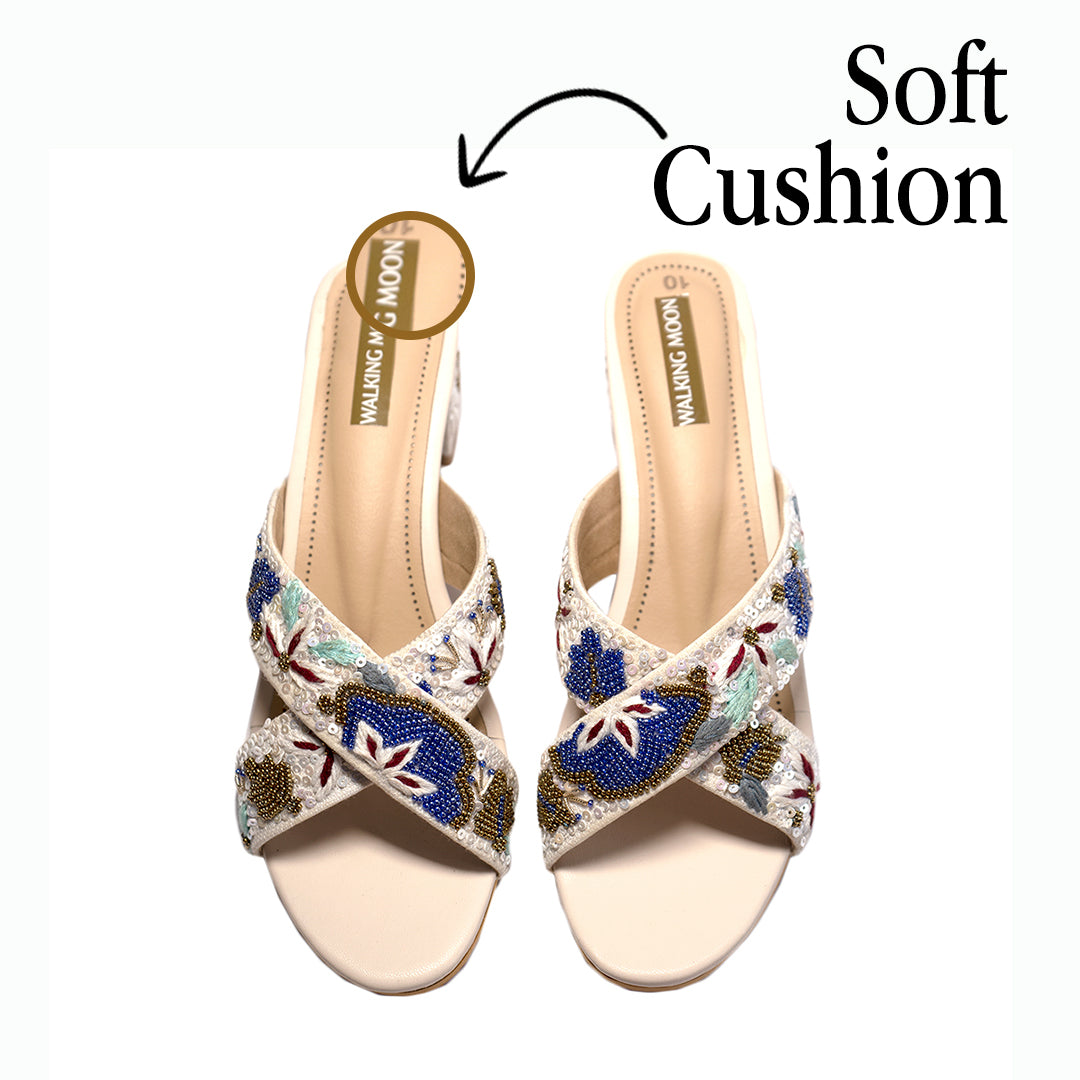 Ivory Floral Cross Block Heel